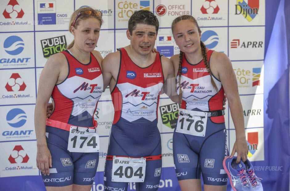 Ce week-end c’était jour de triathlon international à Dijon.(4 secondes de retransmission sur FR3 ! Y’a encore du boulot pour médiatiser notre sport !) Formats S et M le samedi et L + courses jeunes le dimanche. Peu de triathlètes montceliens (les week-ends se suivent mais ne se ressemblent pas !) sur zone mais quelques jolis résultats quand même !
