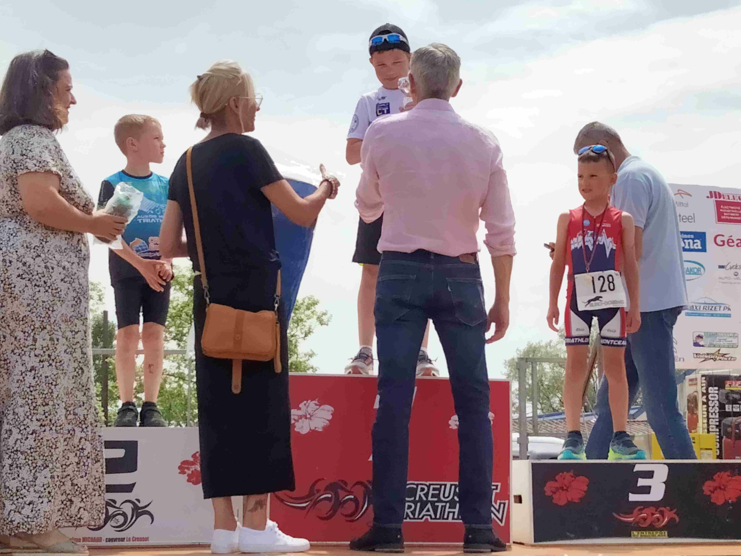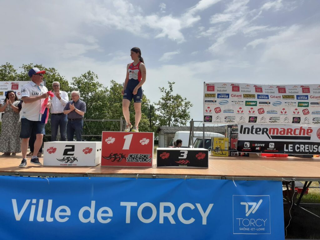Au Creusot, des podiums sont venus récompenser nos triathlètes présents de l’école de triathlon(Jeanne R, Paul b, Eléa B) avec un beau geste du club du Creusot qui a rendu hommage à Patrick.