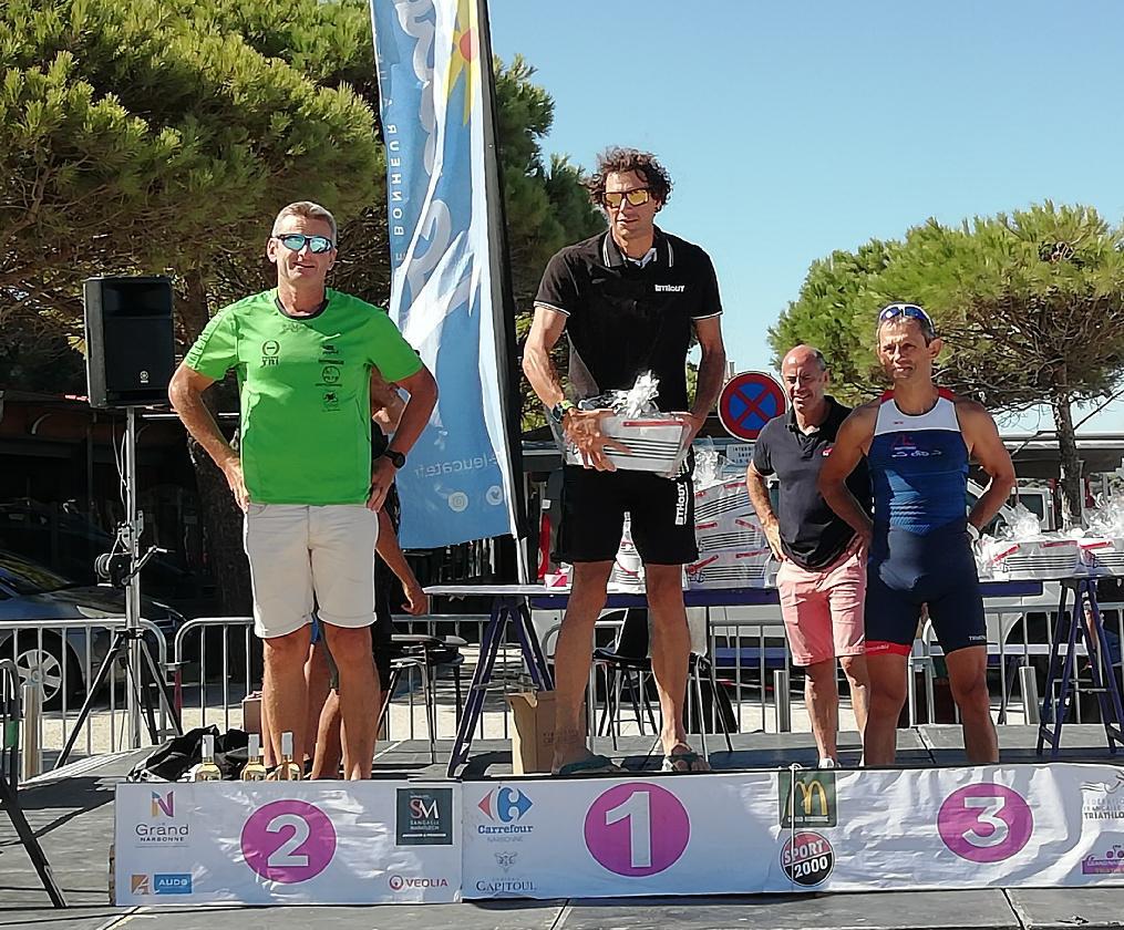 le 11 septembre, Claude Monnet a rejoint Olivier Grivaut sur le triathlon 99.9 de Leucate près de Narbonne et monte sur la 3ème marche du podium masters !