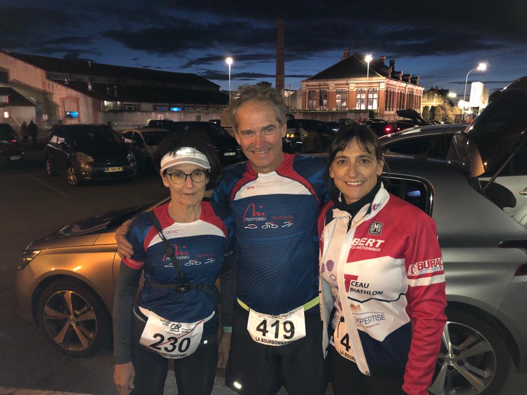 Fabienne, Eric Vaudelin, et Laure Rochaix se sont donnés rendez vous à Bourbon Lancy pour participer à la Bourbonienne; trail de nuit sur 5km pour Fabienne et 10 km pour Eric et Laure.