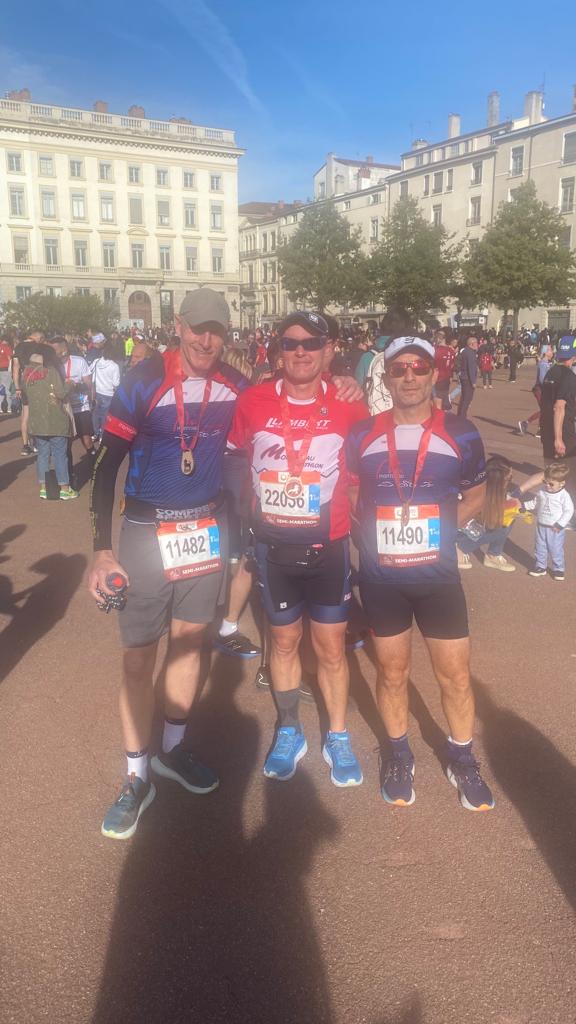 Une délégation est partie à Lyon pour le 10 km pour les 2 plus jeunes, le semi marathon pour Frédéric, Jean Charles et Benoit, et le marathon pour Jean Luc et Laurent.