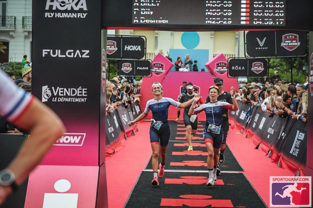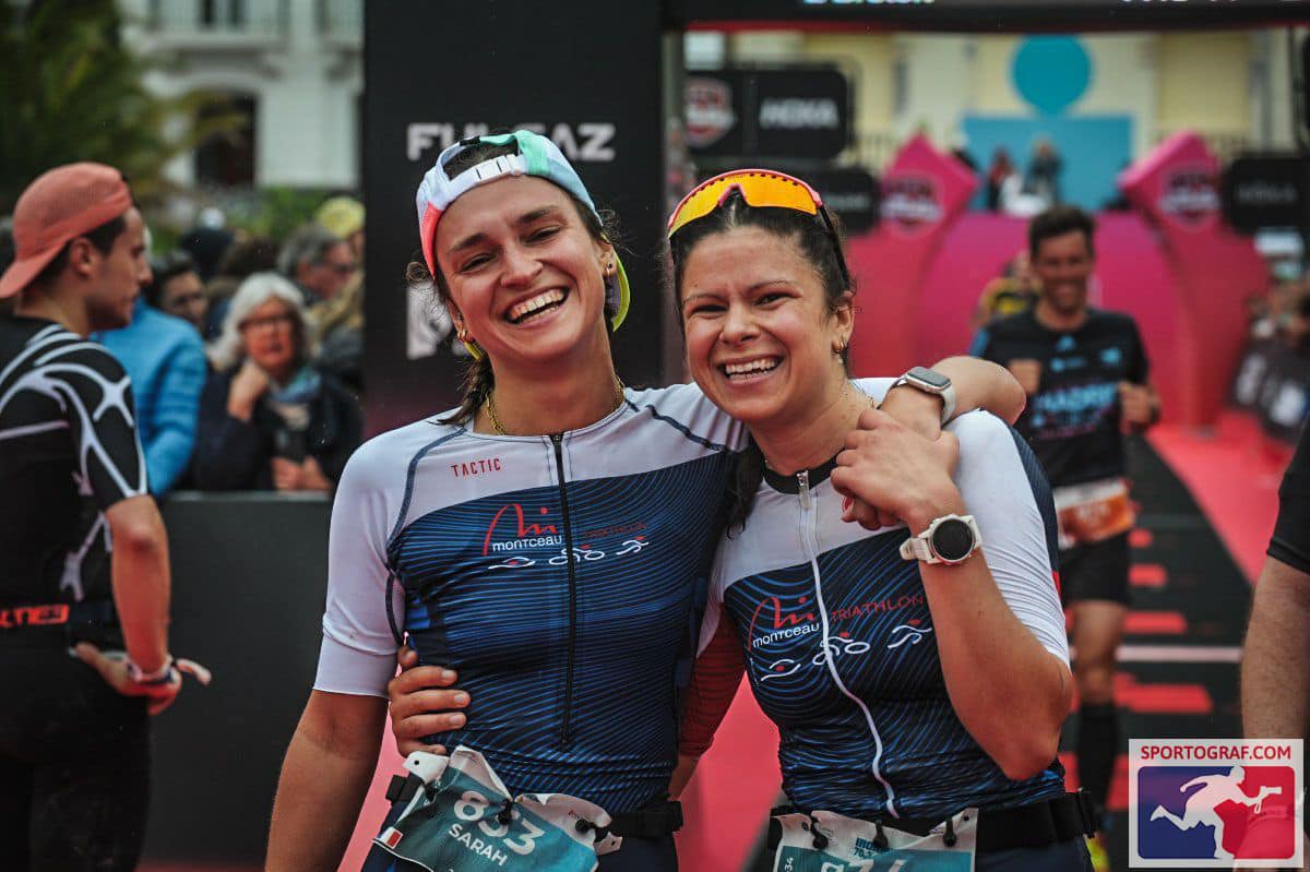 Pour leur 1r half , nos 2 compères Sarah Emorine et Charline Berthier terminent leur 1.9km dans l’Océan, 91km de vélo et 21km de cap en 5h26 avec quelques secondes qui le séparent.