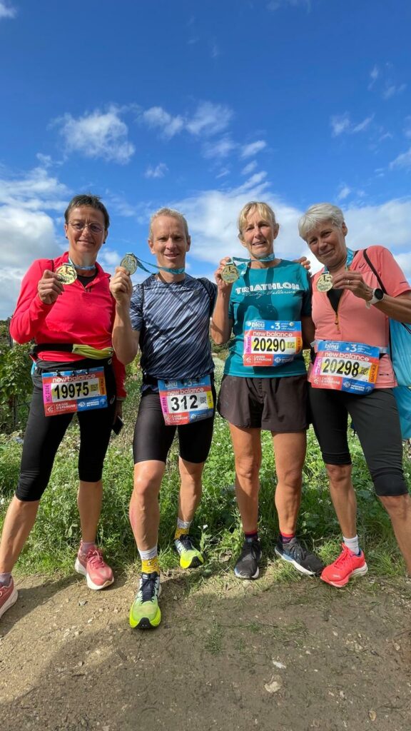 Pendant que certains étaient au bike and run de Dole ce dernier week end de novembre, Jean Luc Bonnetain et Kathleen Bathiard se retrouvaient dans le Beaujolais pour son mythique Marathon du Beaujolais. Ils terminent respectivement en 3h22’47 lui offrant une victoire dans sa catégorie d’age et en 5h08’35 (80e de sa catégorie). Laurent Magnien a quant à lui pris la direction de la Nièvre pour le Marathon de Nevers dont le départ se fait sur le circuit de Magny Cours. Il le termine en 3h12’06 (5e master 2 et 28e toutes catégories confondues).