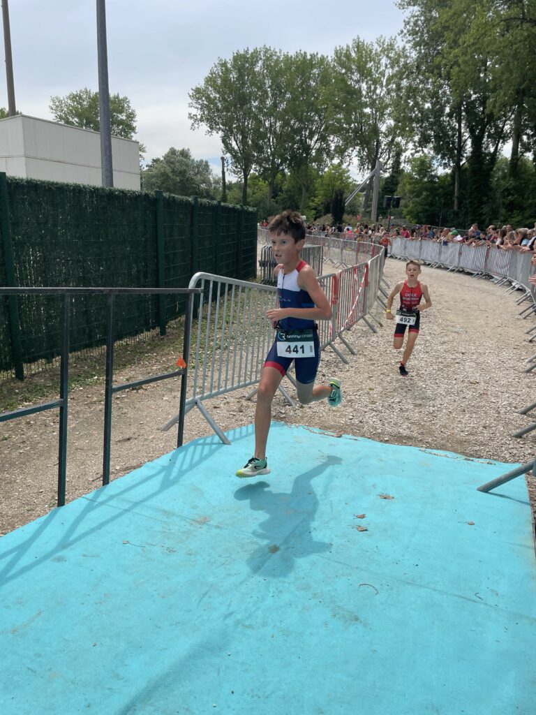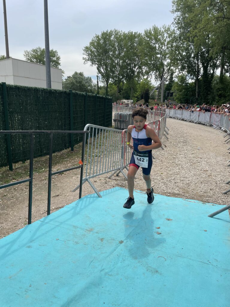 Sur la course 6/9 ans (duathlon), Louis Vinck monte sur la plus haute marche du podium en arrivant au sprint en 8’04.
