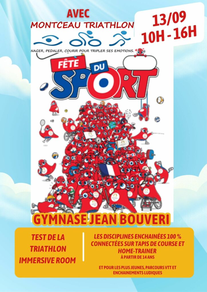 Commentaires fermés sur Fête du sport: samedi 13 septembre Montceau Triathlon a participé à la Fête du Sport 2025 en ouvrant sa salle de la Tri Immersive Room.