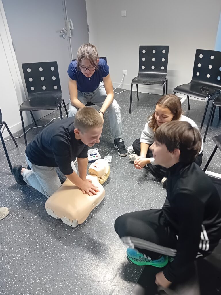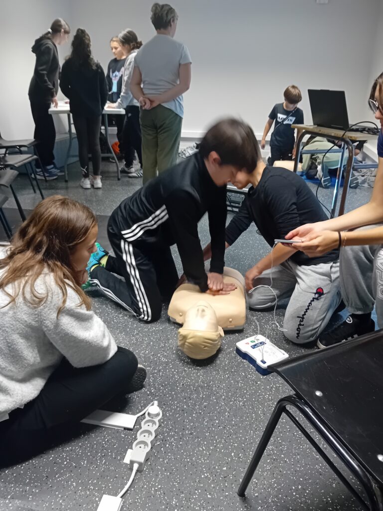 La formation du vendredi 31 était réservée aux jeunes. Axelle, Sarah, Elliot, Jules, Noah, Emmy, Léon, Marion, Roxanne, Marceau, et Rachel se sont impliqués tout au long de la journée. Ils ont appris à passer une alerte, faire les premiers gestes de secours sur une victime, utiliser un défibrillateur, gérer une hémorragie…